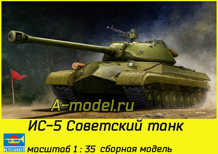 Прямо на этой странице Вы сможете найти и купить сборную модель ИС-5 советског танка от фирмы Trumpeter 1/35 по доступной цене. Мы давно работаем с производителем трумпетер, поэтому позиция с артикулом 09566 оригинальна и всегда готова для заказа. Несколько видов оплаты банковскими картами и доставка в любую точку РФ курьером или почтой.