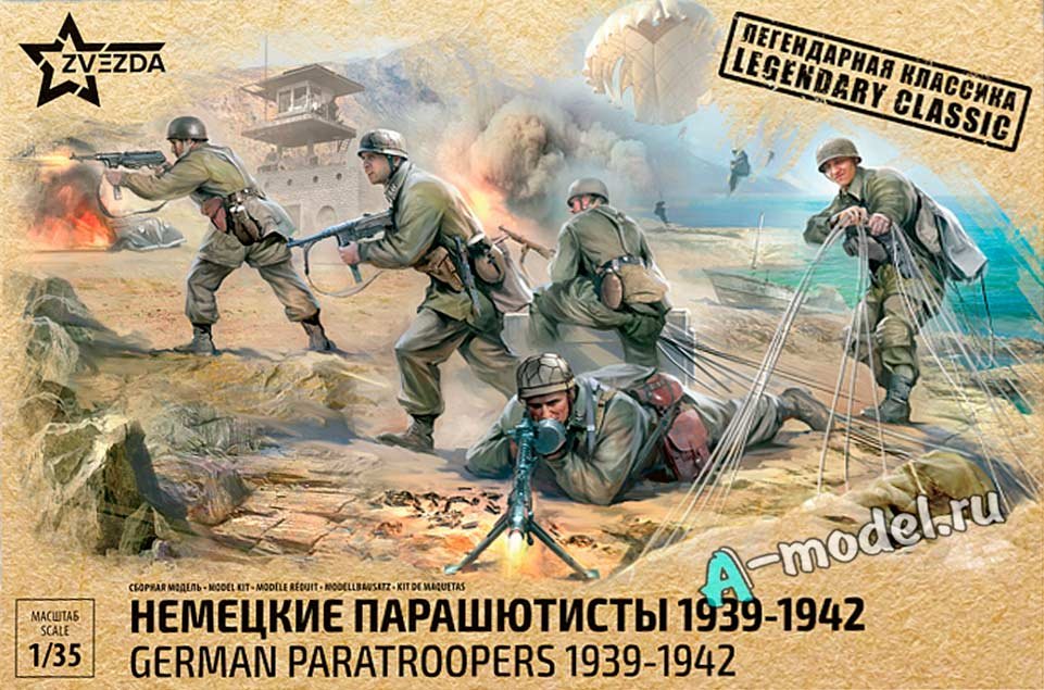 Сборная миниатюра Нем.парашютисты в масштабе 1/35 от компании Звезда. В комплекте набора с моделью: пластиковые детали, инструкция. Отличное схождение деталей модели и прекрасное их качество помогут получить вам удовольствие и массу положительных эмоций во время сборки. Понятная инструкция с крупными рисунками облегчит в понимании моментов сборки. Мы давно сотрудничаем с этим производителем, позиция с товаром оригинальна и всегда готова для покупки. У нас всегда в наличии весь ассортимент продукции. В интернет-магазине представлен ассортимент от множества других компаний связанных с моделизмом. Акции и скидки которые часто проводятся у нас позволят вам приобрести товары нашего магазина по привлекательной цене. Вы всегда можете быстро оформить заказ. Предусмотрены несколько видов оплаты банковскими картами. Ваши заказы отправляем в любую точку России после оплаты, при доставке мы выберем минимальный по цене тариф. Внимание модель не комплектуется клеем и красками, их вы можете отдельно приобрести у нас на сайте.