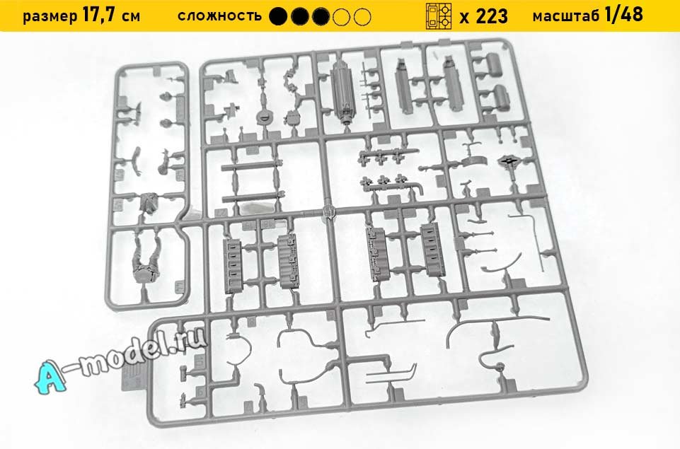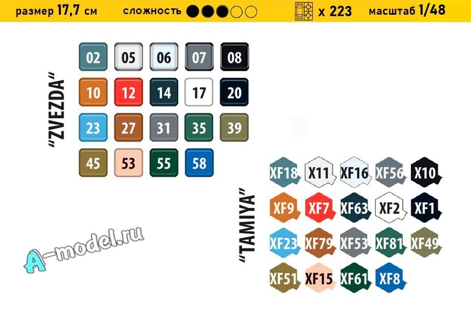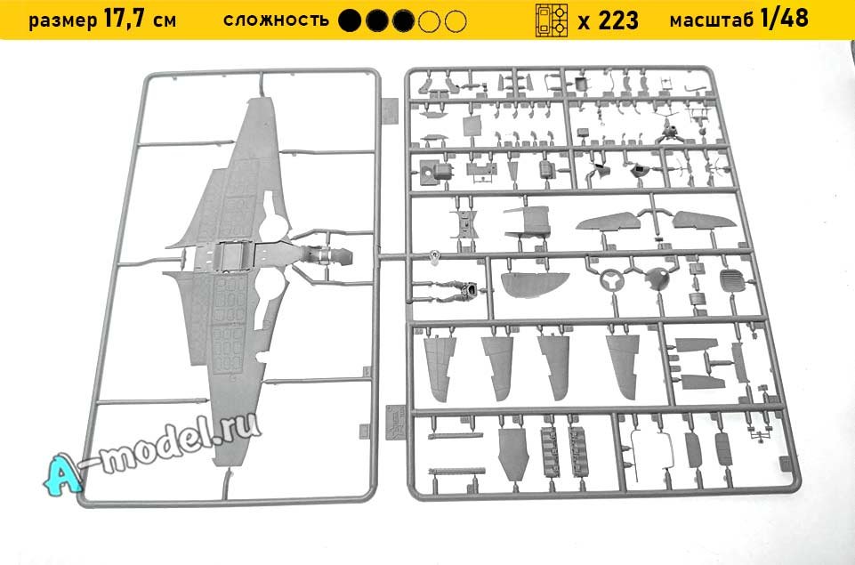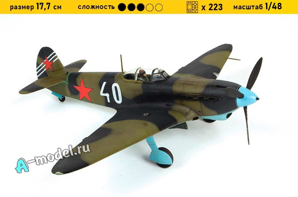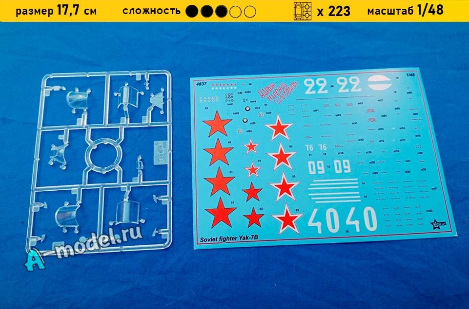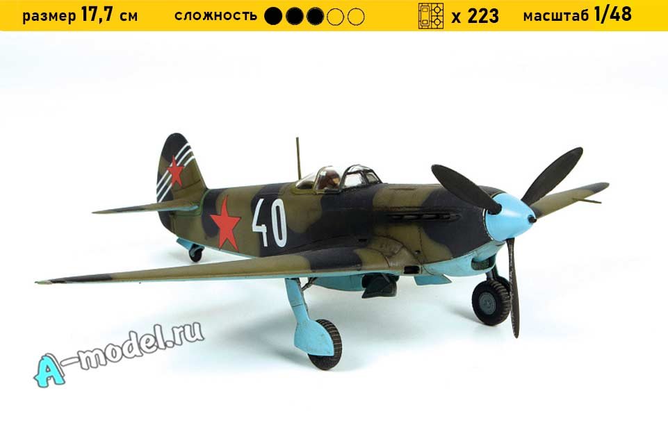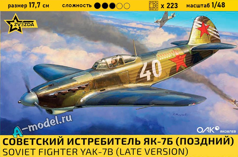 Сборная пластиковая модель в масштабе 1/48 от компании Звезда истребителя Як-7Б. В комплекте набора с моделью: пластиковые детали, инструкция, декали. Отличное схождение деталей модели и прекрасное их качество помогут получить вам удовольствие и массу положительных эмоций во время сборки. Прекрасным дополнением являются декали идущие в комплекте. Понятная инструкция с крупными рисунками облегчит в понимании моментов сборки. Мы давно сотрудничаем с этим производителем, позиция с товаром оригинальна и всегда готова для покупки. У нас всегда в наличии весь ассортимент продукции. В интернет-магазине представлен ассортимент от множества других компаний связанных с моделизмом. Акции и скидки которые часто проводятся у нас позволят вам приобрести товары нашего магазина по привлекательной цене. Вы всегда можете быстро оформить заказ. Предусмотрены несколько видов оплаты банковскими картами. Ваши заказы отправляем в любую точку России после оплаты, при доставке мы выберем минимальный по цене