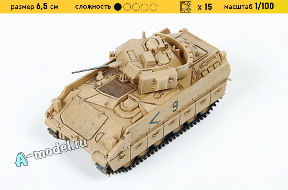 Сборная пластиковая модель американского БМП Бредли М2А2 WT в масштабе 1/100 от компании Звезда. В комплекте набора с моделью: пластиковые детали, инструкция. Отличное схождение деталей модели и прекрасное их качество помогут получить вам удовольствие и массу положительных эмоций во время сборки. Прекрасным дополнением являются декали идущие в комплекте. Понятная инструкция с крупными рисунками облегчит в понимании моментов сборки. Мы давно сотрудничаем с этим производителем, позиция с товаром оригинальна и всегда готова для покупки. У нас всегда в наличии весь ассортимент продукции. В интернет-магазине представлен ассортимент от множества других компаний связанных с моделизмом. Акции и скидки которые часто проводятся у нас позволят вам приобрести товары нашего магазина по привлекательной цене. Вы всегда можете быстро оформить заказ. Предусмотрены несколько видов оплаты банковскими картами. Ваши заказы отправляем в любую точку России после оплаты, при доставке мы выберем минимальный по цене тариф. Внимание модель не комплектуется клеем и красками, их вы можете отдельно приобрести у нас на сайте.