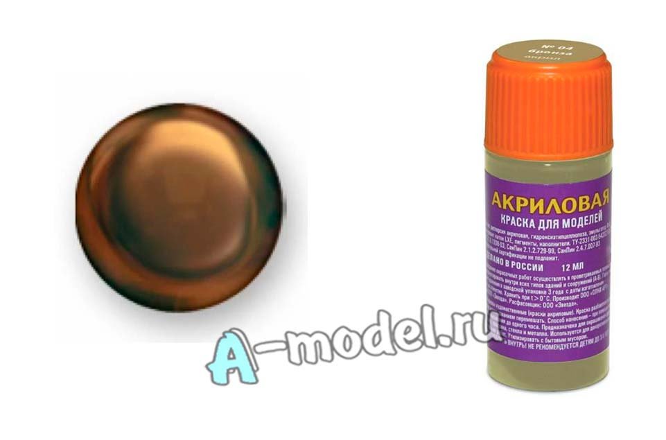 Краска бронза акриловая на водной основе предназначена для нанесения на поверхности из пластика, бумаги, картона, дерева. При покраске пластика желательно предварительно загрунтовать. В Краске отсутствует неприятный запаха. Наносить на поверхность можно с помощью кисти или аэрографа в последнем случае обязательно разбавить водой или разбавителем на водной основе время высыхания 1 час. Эти недорогие хорошего качества акриловые краски от производителя Звезда в большом ассортименте вы сможете купить у нас по доступной цене. Мы обеспечим быструю и безопасную доставку по всей территории РФ и ближайшие содружественные страны.