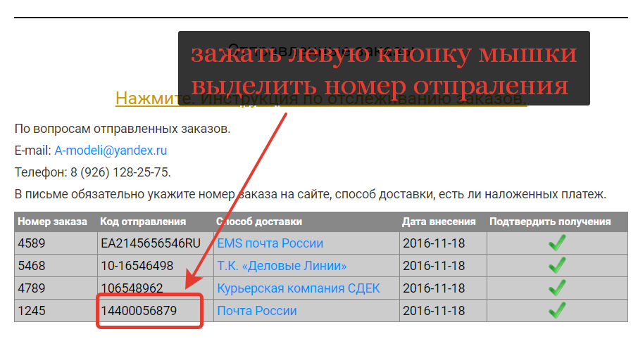 Посмотреть номера заказов и отслеживать номера отправления заказов можно в личном кабинете войдя под логином и паролем в личный кабинет во вкладку "отправления"